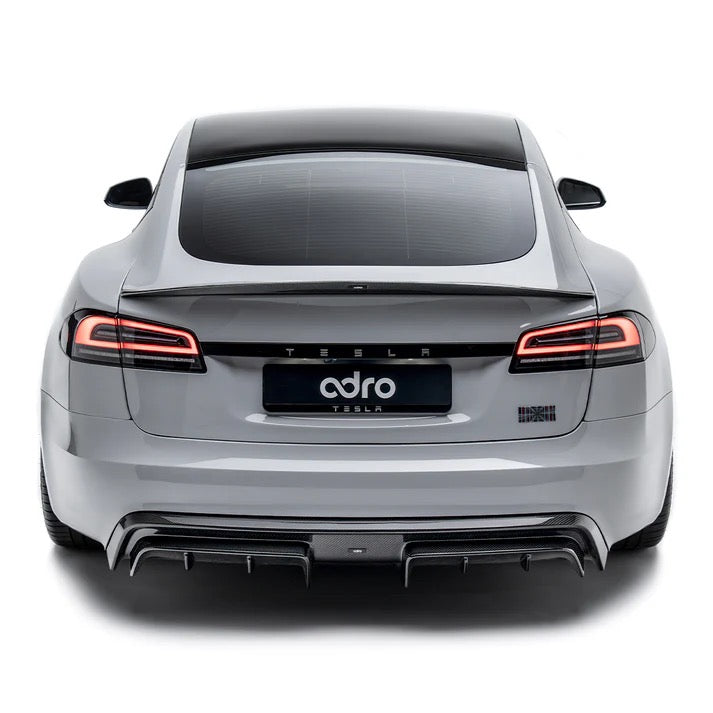 Purpose-built for the Tesla Model S, the Adro Carbon Fiber Rear Diffuser delivers a clean, performance-driven upgrade to the rear end. With sharp contours and functional aero elements, it adds depth and definition without disrupting the car’s sleek, minimalist aesthetic. Crafted from premium prepreg carbon fiber, it offers a perfect blend of strength, lightness, and high-end finish.