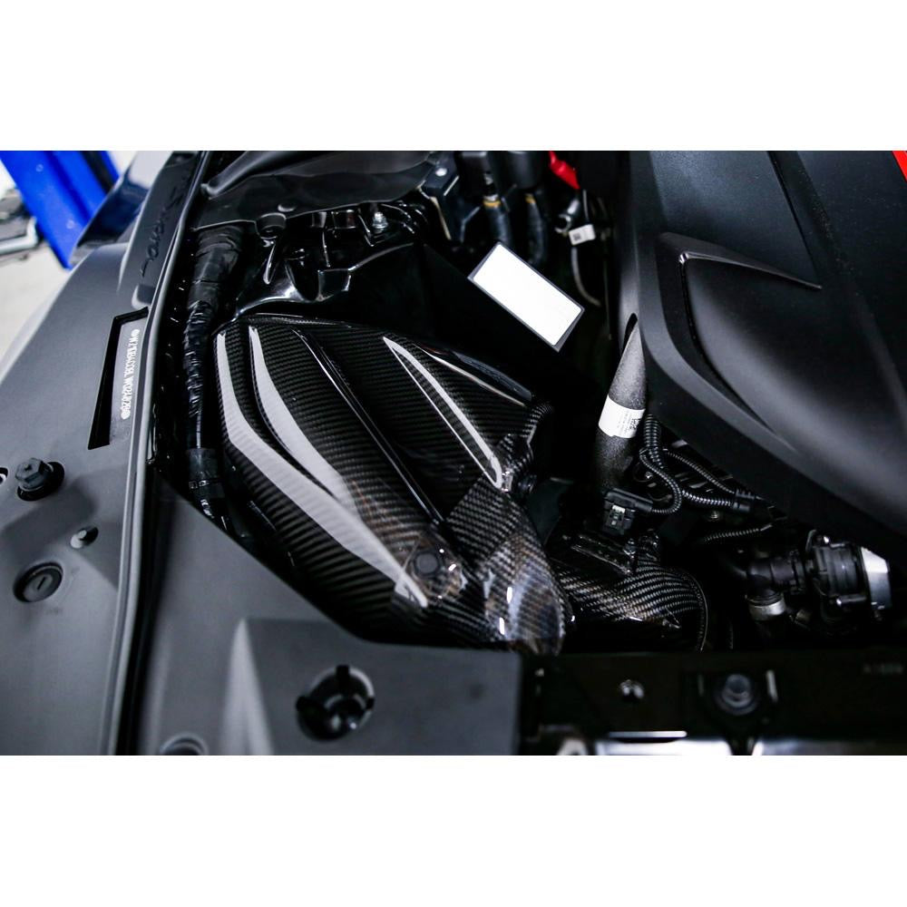 To maximize the engine potential of the GR Supra, HKS suppresses the intake temperature as much as possible. Utilizing carbon as the piping material instead of aluminum helps to reduce heat transfer and provides a high quality appearance under the hood. This intake comes with the HKS Dry Carbon Airbox to further stabilize intake air and protect your intake from engine bay heat.