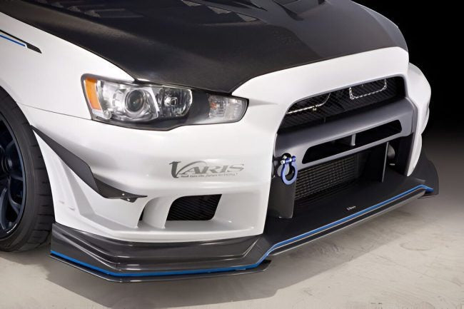Elevate the aesthetics and performance of your Mitsubishi Evolution X with the Varis 14′ Reloaded Front Bumper Ver.2, coupled with the Front Under Lip Spoiler Ver.2. This front bumper, constructed from FRP, is renowned for its lightweight properties, enhancing the vehicle’s dynamics without compromising strength. It features an aggressive design that not only boosts the car’s appearance but also improves airflow, crucial for maintaining engine performance. The front under lip spoiler, available in either sleek carbon fiber or robust FRP, complements the bumper’s design while further aiding aerodynamic efficiency. This combination makes it an ideal choice for drivers looking to combine fierce styling with functional performance enhancements.