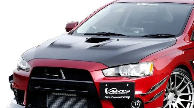 The Varis Cooling Bonnet Ver.1 for the Mitsubishi Evolution X combines functionality with premium construction to enhance your vehicle’s performance and aesthetics. Featuring large heat extraction vents, this bonnet is designed to efficiently remove excess engine heat, thereby improving thermal management and overall engine performance. It is available in a variety of high-quality materials, including fiberglass-reinforced plastic (FRP), carbon (half-carbon), and Varis Semi-Dry Carbon (VSDC), each offering a balance of durability and weight reduction. Whether you’re looking to boost your car’s performance or its curb appeal, this cooling bonnet provides a perfect blend of style and efficiency.