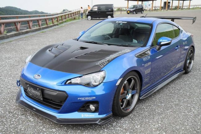 Varis’ new release for the Subaru BRZ features a cooling bonnet system 2 with naca ducts made out of FRP. Carbon shown for illustration purposes. Comes ready to prep, prime and paint to your desired color.