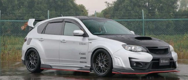Adds 8mm to each side to accommodate wider wheels and tires. Also included are extension covers meant to work with the Varis Ultimate version 2 front bumper.