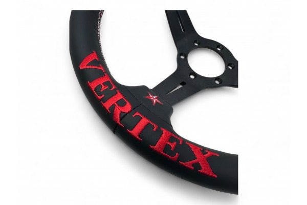 The Vertex 6 Star Steering Wheel in Red Leather makes a bold statement with its vibrant finish and iconic JDM design. Featuring a 340mm diameter and 70mm deep dish, it delivers aggressive control and driving ergonomics with authentic street style. Wrapped in high-quality leather, this steering wheel is built for comfort, durability, and long-lasting color pop. Horn button is included. 340mm Diameter, 70mm Deep Dish, Red Leather Finish, 6 Star Spoke Design — Classic Vertex Look. Includes Horn Button, Fits Most 6-Bolt Boss Kits (MOMO/Sparco Pattern), Made in Japan.