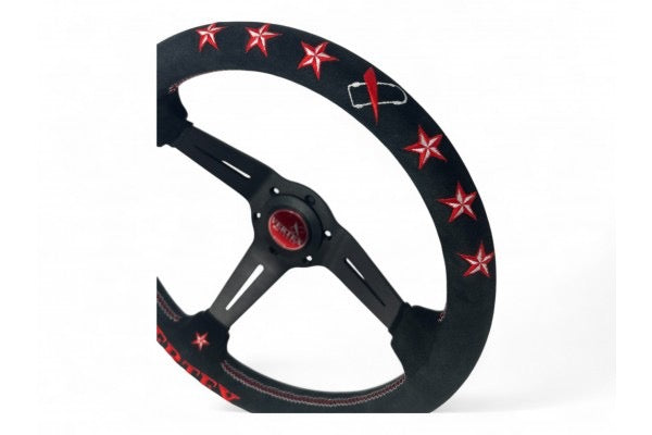 The Vertex 6 Star Steering Wheel in Red Suede is built for drivers who want vibrant style and confident grip. With a 340mm diameter and 70mm deep dish, this wheel is ideal for drift setups and spirited driving where quick response and wheel feel matter. Wrapped in vivid red suede, this wheel is as eye-catching as it is functional. Horn button is included for a complete, ready-to-install setup. 340mm Diameter, 70mm Deep Dish, Red Suede Finish, 6 Star Spoke Design — Bold & Functional, Includes Horn Button