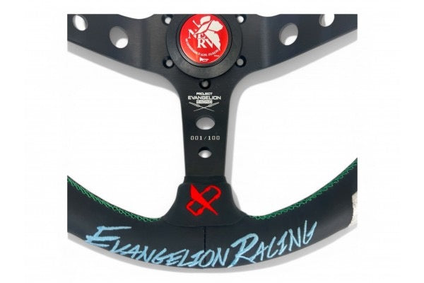 The Vertex x Evangelion Racing Steering Wheel – Version 4 (Rei Ayanami Model) is a collector-grade collaboration that fuses motorsport function with iconic anime culture. Designed by Vertex Japan in partnership with Evangelion Racing, this 330mm wheel features a 90mm deep dish, wrapped in high-quality leather, and finished with Rei Ayanami’s signature blue and white theme