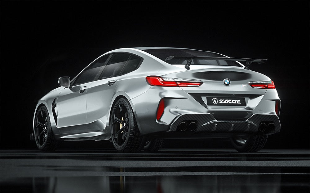 ZACOE's ultimate ultra-light carbon fiber aero program for BMW flagship luxury sedan— F92 and F93 M8. We created a M8 body kit based on the original BMW design language, adding subtle aggressiveness blends with our concepts and ideas, you can see ZACOE's avant-garde elegance with racing spirit in it. ZACOE bodykit for the M8 including front lip, side skirts, rear diffuser, rear ducktail spoiler and a rear wing, giving the car much more aerodynamical efficiency and an ingenious look that separate your M8 from the others.