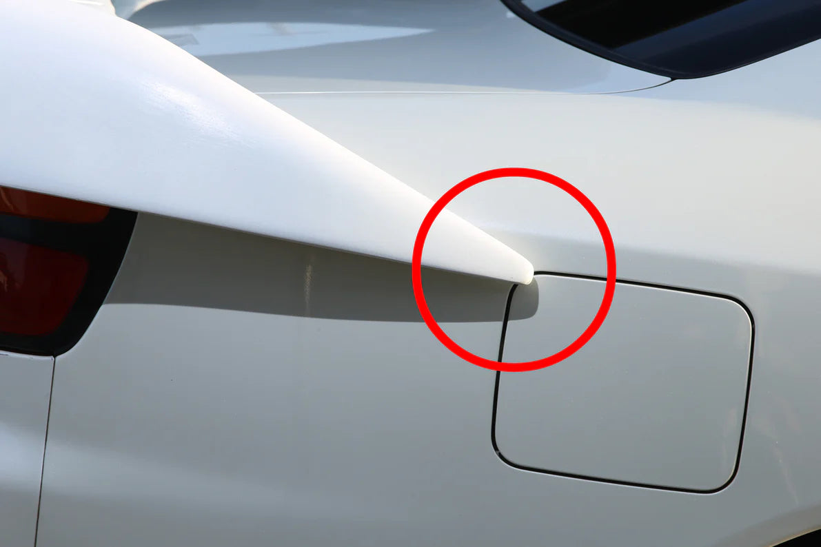 Due to its design wing tip is very close to fuel door, please open trunk to open fuel door.