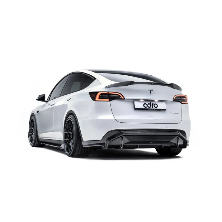 The ADRO carbon fiber rear spoiler V2 is made from our handcrafted carbon fiber to ensure it is as strong and lightweight as possible. It aids in performance by reducing drag to enhance the efficiency of the Tesla Model Y’s electric powertrain. The spoiler is incredibly easy to install and fits as if it came from the factory, with no weird panel gaps or uneven surfaces, thanks to our proprietary 3D scanning process that ensures a perfect fit. The Tesla Model Y carbon fiber spoiler is what the Model Y has been missing all along.